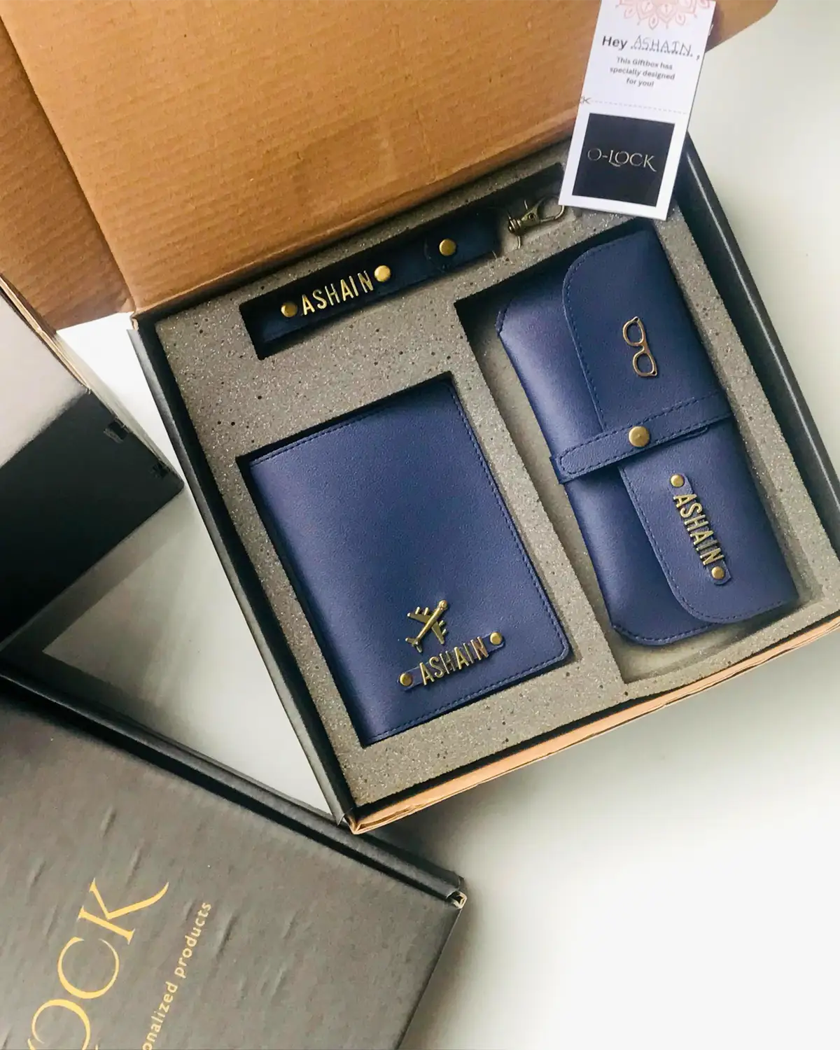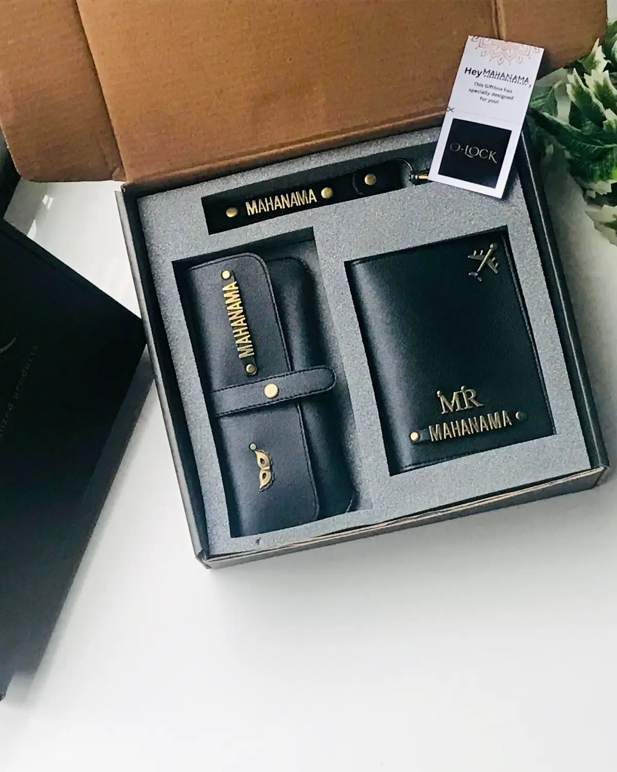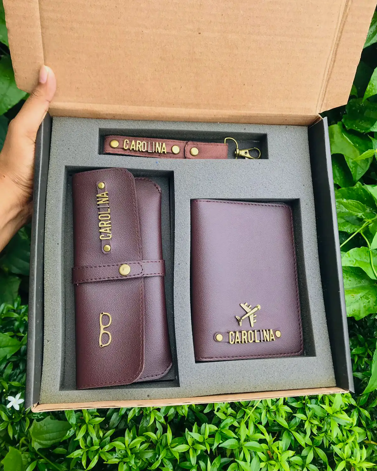 Customizable Designs: Personalize the wallet and sunglass case with names in elegant gold lettering. This gives a truly unique and personal touch.